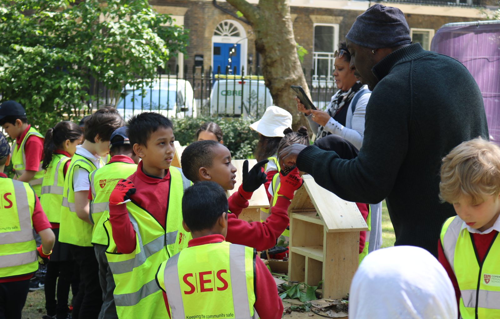 The hotels were filled with bamboo, cardboard, pinecones, twigs, scrap wood and leaves providing a home for beneficial insects that can help pollinate the plants around Copenhagen Primary Schools Garden as well as Woburn Garden Square.