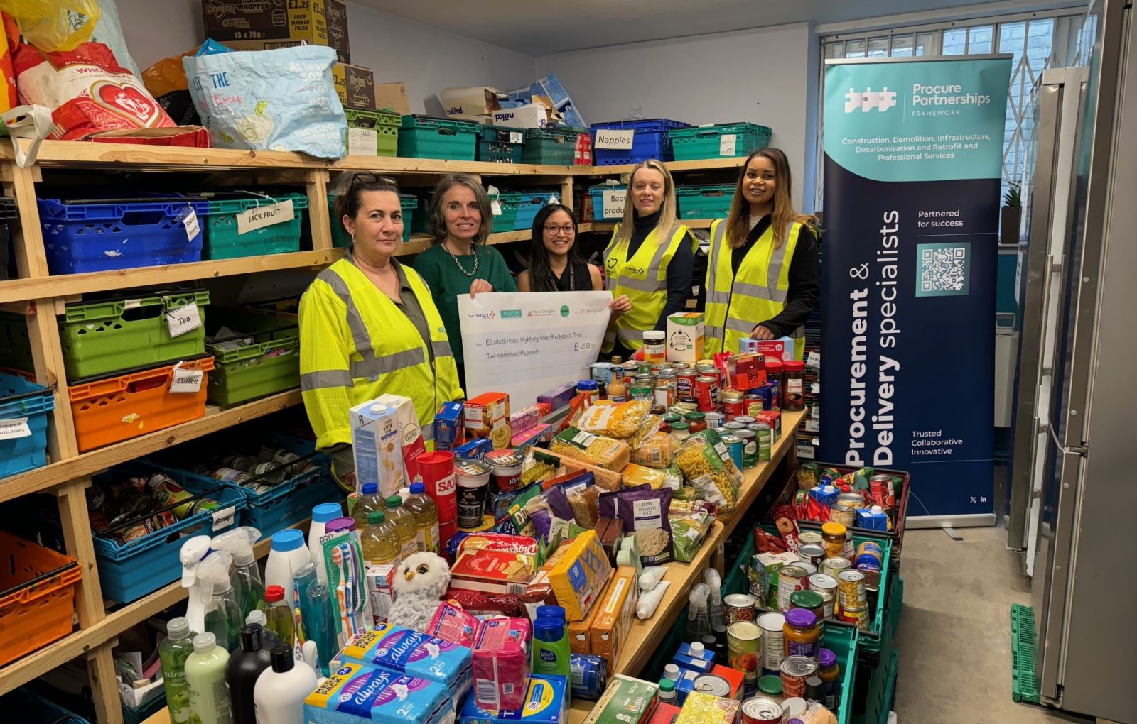As part of Procure Partnerships collaborative working group. Quinn London recently partnered alongside Vinci Construction UK, Tilbury Douglas and Milestone Infrastructure to fundraise and collate food bank donations for Islington charity, Elizabeth House.