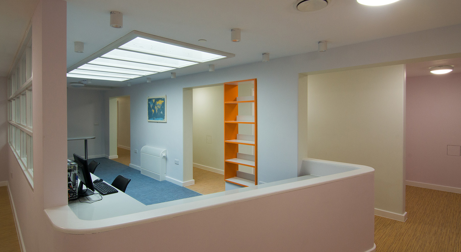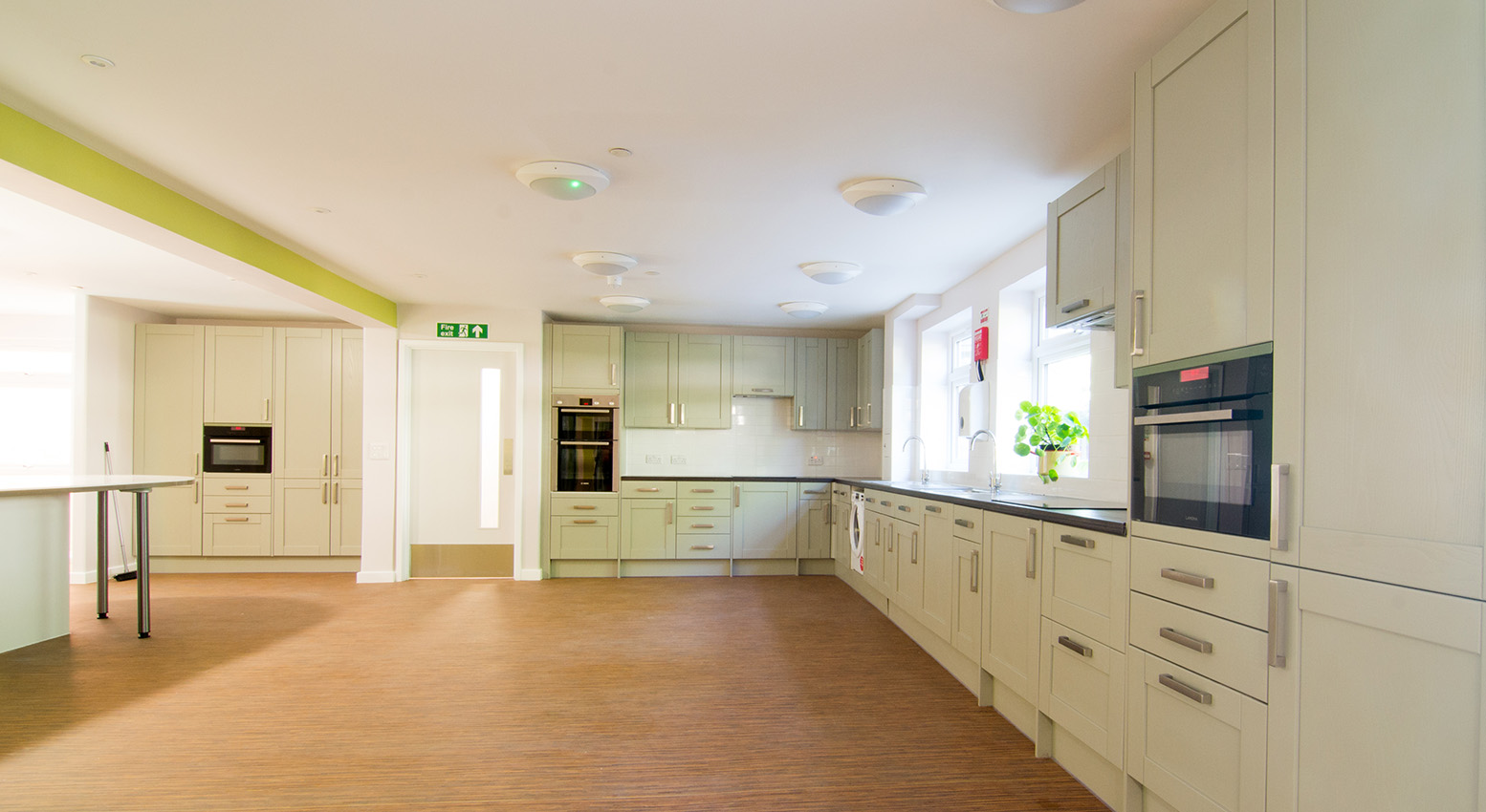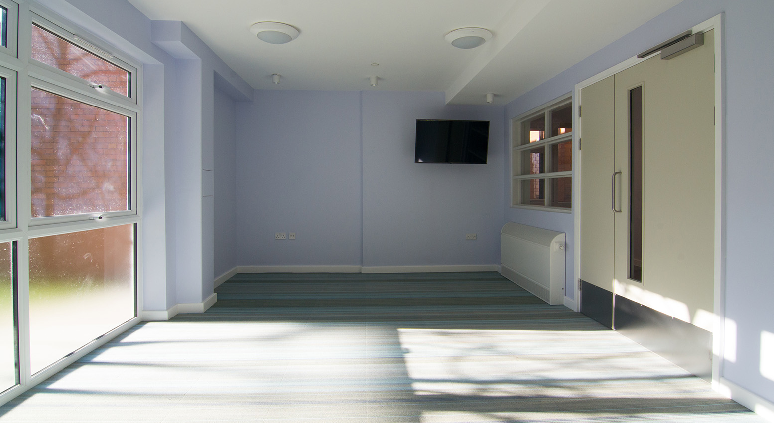 The scope of the project involved a comprehensive strip-out of the existing building, including the removal of internal walls and installation of new steel goal post supports on both the ground and first floor. Additionally, new partition walls were erected, and all new mechanical and electrical services were installed. The result was the creation of 11 new bedrooms, each featuring wireless handle access control, bespoke fitted wardrobes, and linen cupboards. Two large sliding folding partitions were also installed to divide the kitchen/living room/games room areas for enhanced flexibility. The centre has a fully adapted kitchen, an exercise and games room, a reablement room, an IT suite, and an accessible garden