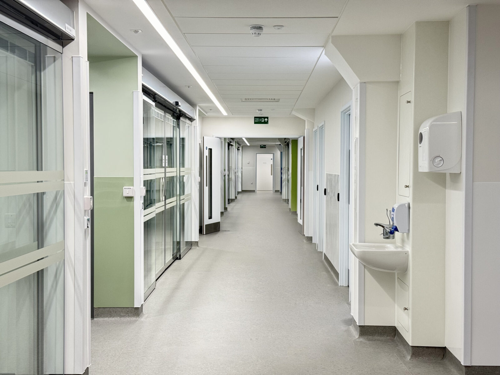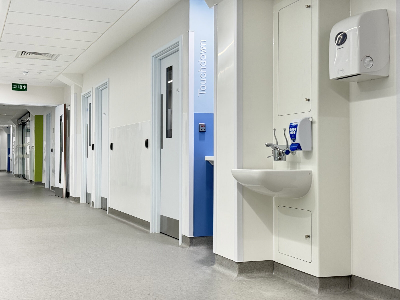 Particular challenges included the requirement to cut off all oxygen supply within the hospital for a period of 30 minutes while we connected the new clinical areas. The works also required connection to the existing drainage in live clinical areas below the works area. We arranged access with four different departments and carried out connections out of hours to minimise disruption.